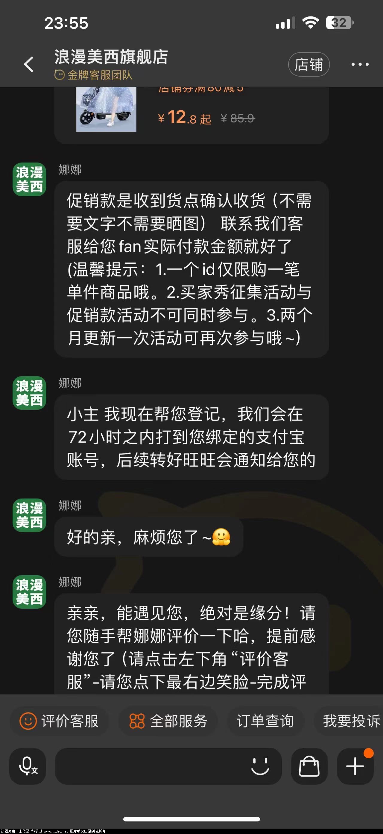 到货好评给客服返款之后就去找平台客服申请价保即可多撸8米